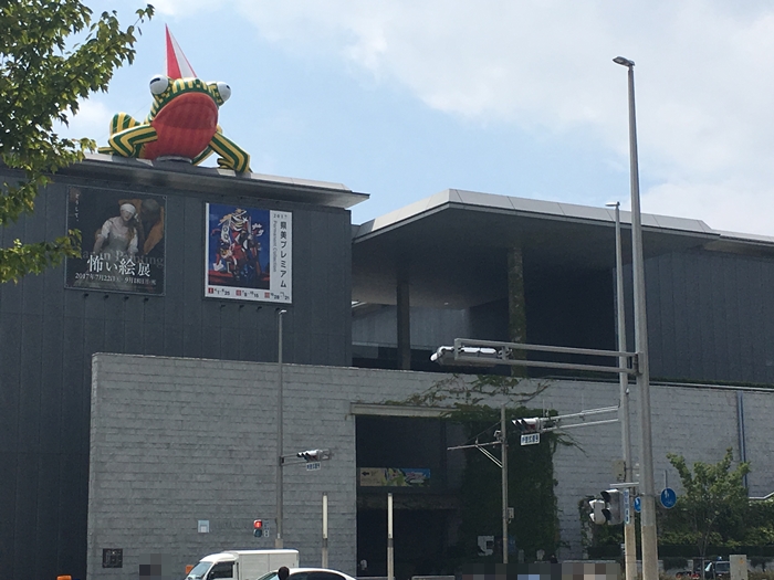 ポップな色合いと県立美術館のシンボル「美かえる」が描かれています。