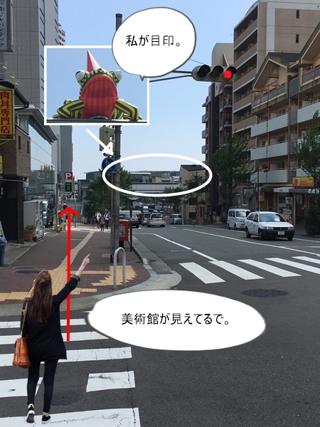 写真ではわかりずらいですが、交差点になっていて赤線の道路がミュージアムロードです。